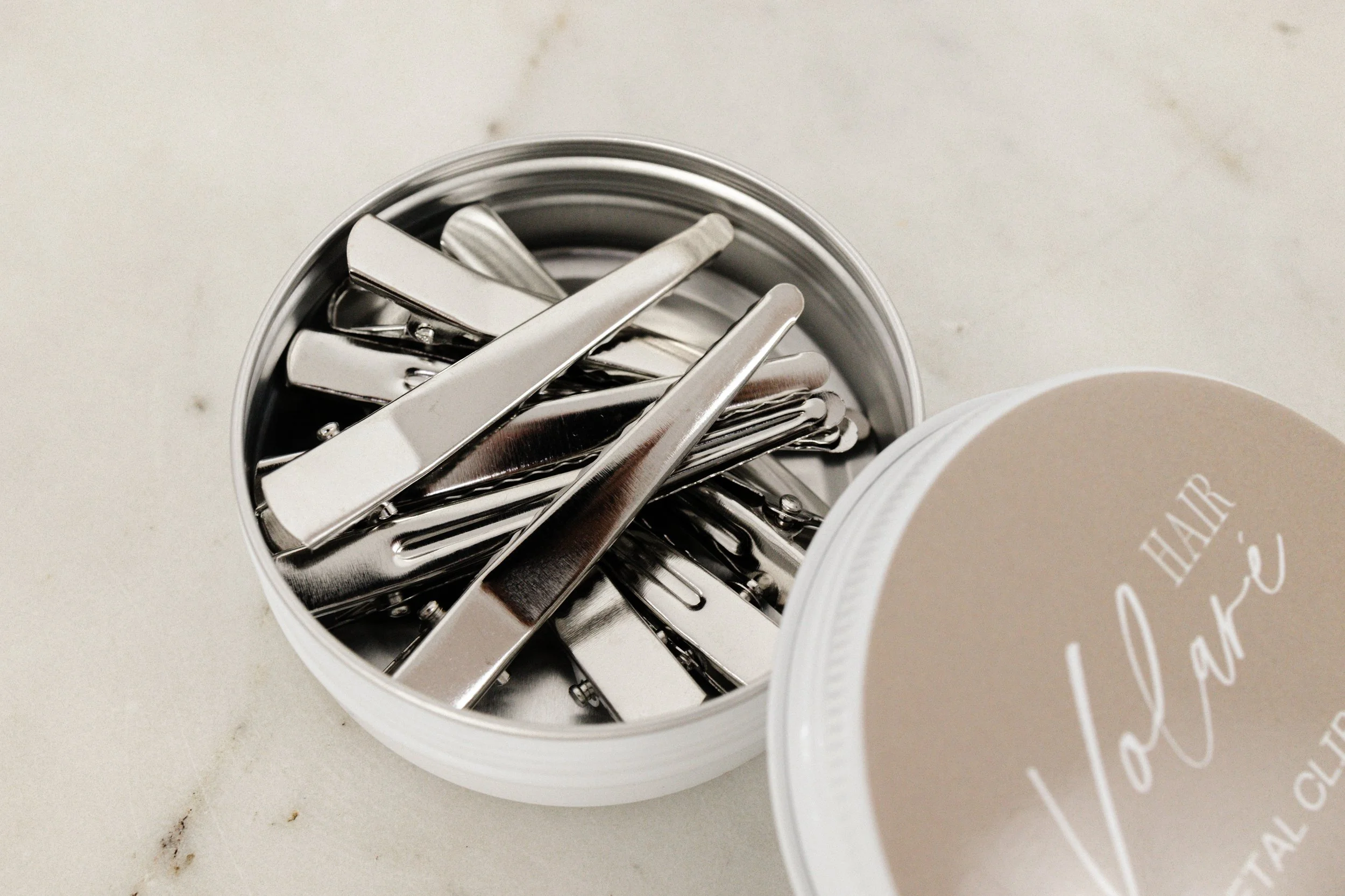 Volaré Silver Metal Clips are essential for managing hair during the extension process. These sleek, durable sectioning clips securely hold hair in place, allowing for precise and efficient styling.